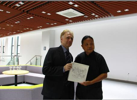 孟凯若先生在致辞中回顾了意大利与中国特别是南京源远流长的文化交流与友谊,并介绍了航天主义画派在意大利的发展情况。他代表意大利驻沪总领事馆对永利集团官网yl23411永利集团官网、图书馆对展览的大力支持表示感谢,并希望将来有更多的机会能与永利集团官网合作。我院王立庆老师为孟凯若先生现场作画并将画作赠送。