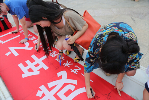 之后,同学们进行了签字仪式。火红的条幅上满是同学们关于成长的热切期盼,对于青春的无悔誓言。