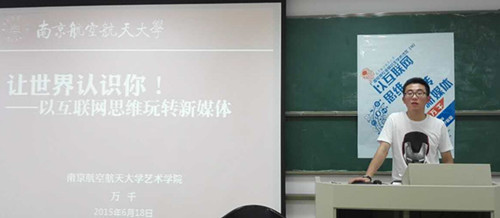 6月18日晚,南航yl23411永利集团官网广播电视艺术学专业研究生在艺术楼207教室开展了一场题为“以互联网思维玩转新媒体”的学术沙龙,广电专业研究生万千为此次主题沙龙的主讲人。参与此次沙龙的还有2012级广播电视新闻学专业本科生、校团委宣传部和纸飞机南航青年网络社区的相关同学。