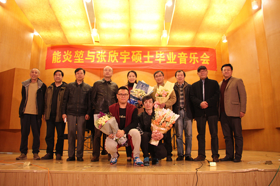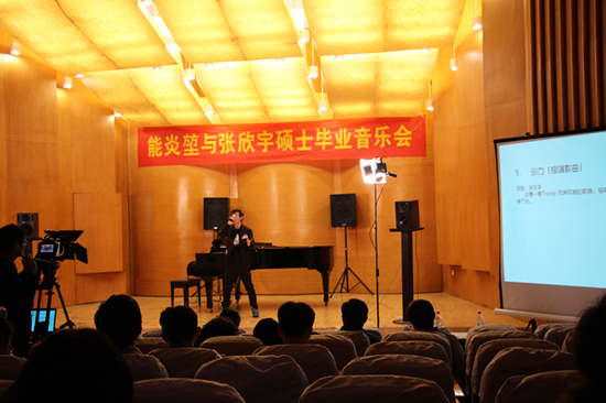 3月23晚,我院2016届计算机作曲与传统作曲研究方向的硕士毕业生能炎�与张欣宇在南航江宁校区音乐厅成功举办毕业音乐会。南京yl23411永利集团官网博士生导师庄曜教授、本院党委书记张新明、院长张捷、谢力荣教授、黄舒拉教授及各学科教师与同学观看了演出。本次音乐会主题为“造乐人”,是能炎�与张欣宇硕士在南航yl23411永利集团官网研究生学习期间的汇报与总结。共演奏了11首作品,由毕业生导师庄曜教授、谢力荣教授、黄舒拉教授担任艺术总监。音乐会的开场是一曲电子管弦乐作品――《英烈魂》,这首歌曲由能炎�创作,抒发国难家仇之情,大气磅礴,瞬间引燃了全场的气氛。