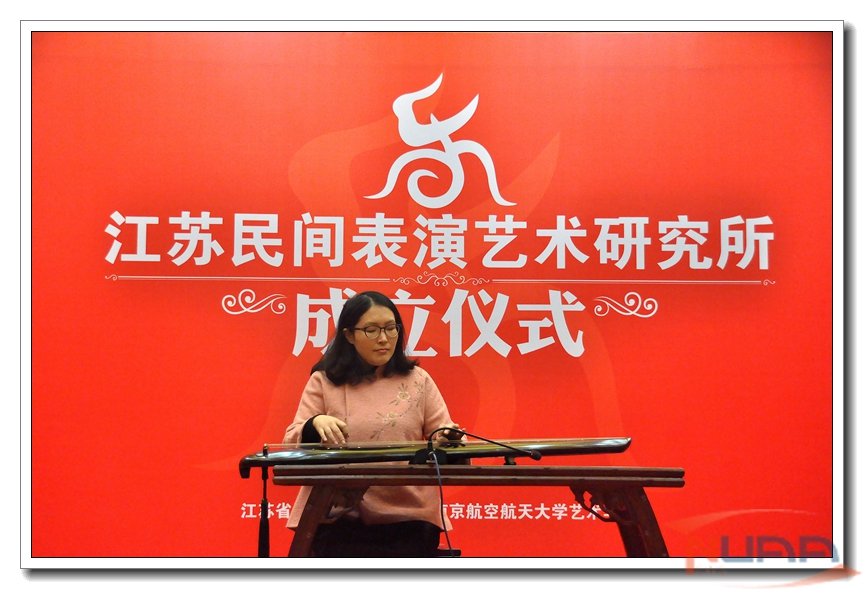 在研究所成立仪式上,邀请了青年古琴演奏家、广陵派传人赵烨女士演奏古琴代表曲目,还邀请南京白局省级传承人马敬华女士演唱了经典白局唱段,邀请南京师范大学音乐学院院长徐元勇做了题为《中国俗音乐学科建设》的学术报告。