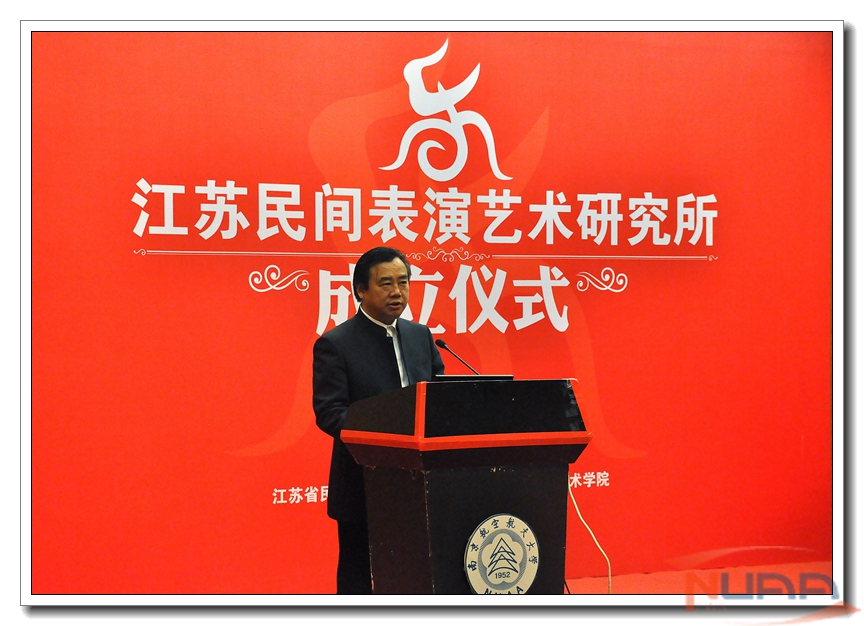 校长助理熊克教授在成立仪式上致欢迎词。他指出,江苏民间表演艺术研究所的成立,体现了南航对民间表演艺术与文化研究、非物质文化遗产保护等领域的高度关注,也是学术界及江苏省文化系统对永利集团官网在该领域所取成绩的充分肯定。它的成立有利于永利集团官网加强人文学科建设,进一步服务江苏文化建设。同时,也为各种民间传统文化艺术的交流提供平台,是一次双赢的合作。