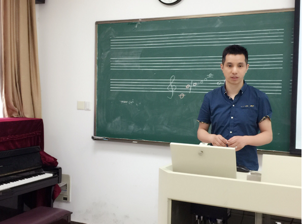 同学们对这门课程的反映也异乎寻常地热烈。起初大家以为邱爱金老师上一两次就不会再来了,当得知老师会陪伴大家完成全部课程计划时都兴奋不已。平时一下课同学们总会积极地向邱老师询问钢琴演奏、歌唱的技巧及控制方法,在最后一节课上,每个同学们上台演唱了自己的拿手歌曲,让老师打分,检验自己通过课程学习在歌唱技巧上取得的进步。两位老师从歌唱表演及控制角度对每个同学给出了不同的建议。课程结束时,同学们对控制以及歌唱都产生了浓厚的兴趣。