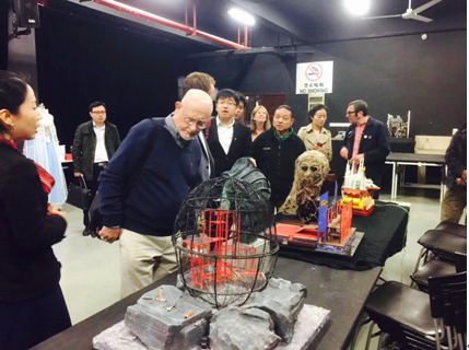 一行客人在交流中还参观了yl23411永利集团官网的舞台美术工场、砚湖书院、数字音乐实验室、无人机航拍影视主题创新区、数字媒体图形图像工作室、创意工场等场所,体验了中国传统书法、舞台美术专业学生课程结课作业展、环境设计专业学生毕业设计作品太空漫步VR设计作品,并对yl23411永利集团官网的人才培养特色和成果表示赞赏,对未来的合作和交流表示期待。
