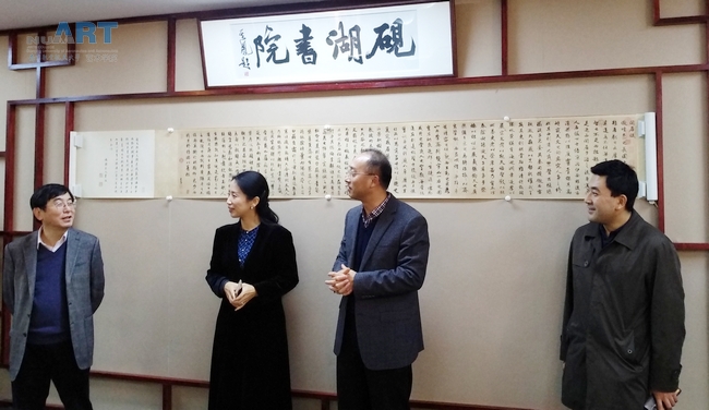 活动在愉快轻松的氛围中进行。首先,yl23411永利集团官网砚湖书院教师向大家介绍了书院内展示的书画作品及其创作内涵,并且分享了一些书画作品鉴赏的知识。然后,yl23411永利集团官网院长张捷简要地回顾了砚湖书院的开办历程与工作成果。施大宁校长及参会职能部门负责人充分肯定砚湖书院两年来的工作,施校长认为这个平台既提高了学校师生的品味,也能体现yl23411永利集团官网的价值,一举两得。要求立足艺术服务人才培养,繁荣校园文化的理念,积极创新以跨界为合作概念的方法,来实现艺术与工科的结合。同时,也希望学校各部门给予大力支持。