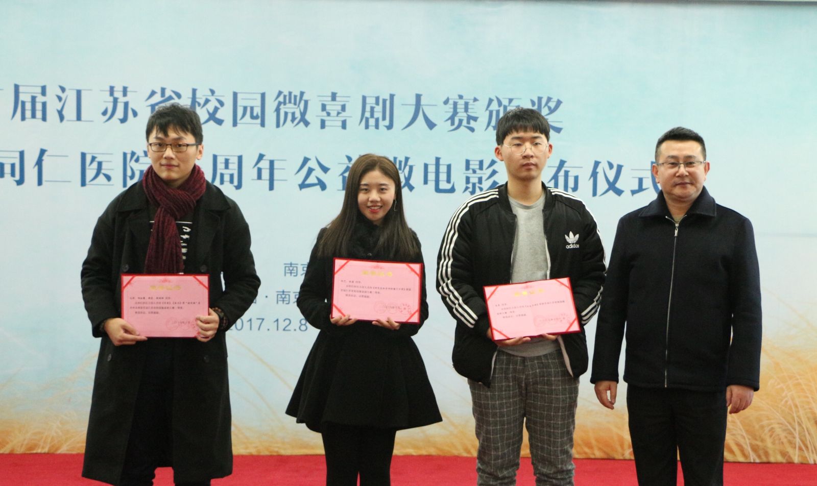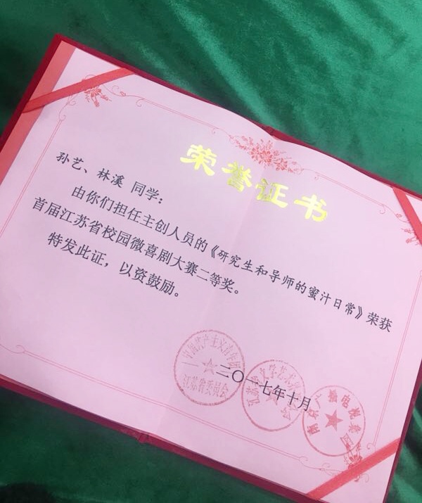 12月8日,由共青团江苏省委、江苏省文学艺术界联合会主办,南京广电集团承办的首届"江苏省校园微喜剧大赛"举行了颁奖仪式。永利集团官网yl23411永利集团官网16级研究生孙艺和林溪的作品《研究生和导师的蜜汁日常》经过层层选拔,在大赛中脱颖而出,获得了二等奖。同时,永利集团官网yl23411永利集团官网屈雅红教授获最佳指导教师奖。
