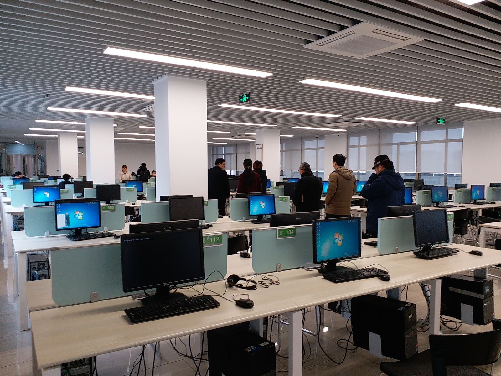 在六楼信息化技术中心计算机基础教学与实验部参观了计算机实验室、开放式学习区和国际互联网访问保障室。新建的3间计算机实验室面积约2000平米,设有448个机位,是学校各类计算机辅助教学的主要上机实验场地。