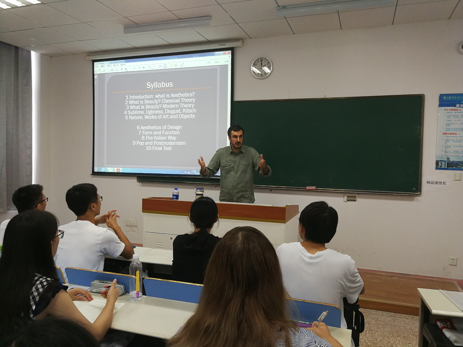 受到yl23411永利集团官网的邀请,意大利佛罗伦萨大学Andrea Mecacci 教授在暑期为来自永利集团官网各学院的62名学生讲授了“Aesthetics”课程。这位来自“艺术之都”意大利的教授对西方美学的理解有着独特的视角。短短两周的课程中,他对从古希腊以来各个时期、以及现代的西方美学思想发展史做了一个系统的、全面的梳理和介绍,使学生们对西方美学的发展历程和代表性流派有了比较完整的认识。