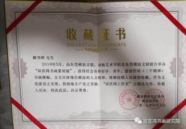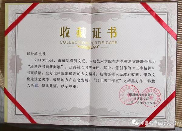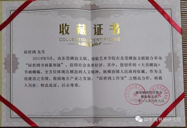 2018年5月,由yl23411永利集团官网、东莞市横沥镇文联主办,南京市书法家协会、邱世鸿书画研究院协办的“美在新时代——邱世鸿书画篆刻展”隆重开幕。