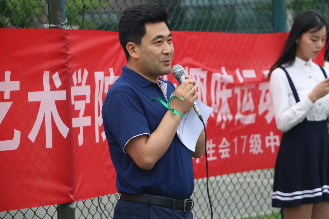 院党委书记高小泽发表了讲话。“和同学们在一起,我感受到了年轻的氛围,自己也感觉自己年轻了不少。”高小泽说,他希望能够通过本次运动会拉近老师和同学们之间的距离,艺术师生合力共建yl23411永利集团官网和谐温暖的大家庭。