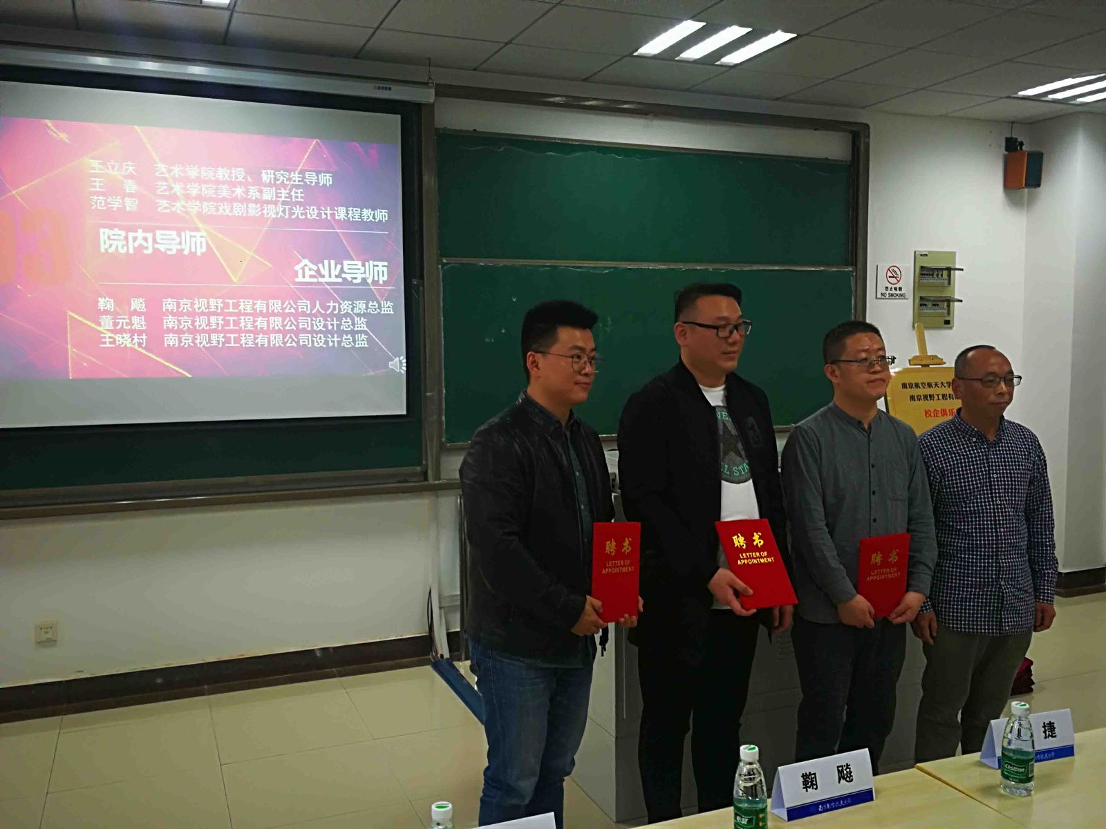 为全面推行校企协同育人的有关部署,深化我院与重点用人单位的全方面合作与交流,4月24日下午,yl23411永利集团官网与南京视野工程有限公司举行了校企俱乐部成立仪式。会上,yl23411永利集团官网院长张捷教授与南京视野工程有限公司人力资源总监鞠飙先生共同为校企俱乐部揭牌,院长助理马道全教授为校企俱乐部导师颁发聘书,yl23411永利集团官网美术系王春老师、范学智老师受聘担任俱乐部校内导师。yl23411永利集团官网党委副书记张林老师也参与了会议并与企业代表做了深入交流!