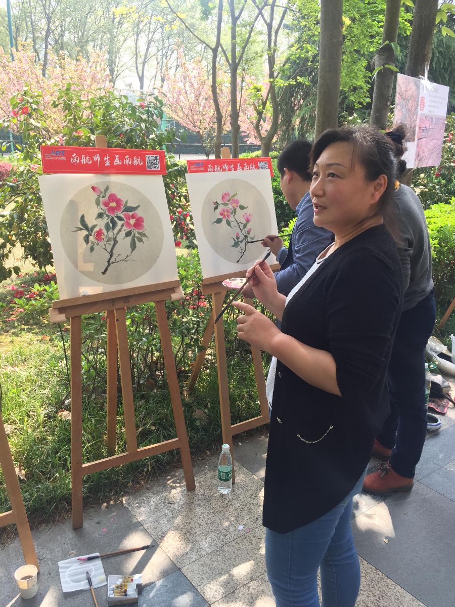 4月2、3、4日,yl23411永利集团官网在明故宫校区和将军路校区开展了“南航师生画南航”写生体验活动,学院王立庆教授、熊炜教授、张春华副教授等专业老师和学生积极参加活动并到现场作画和指导。小小的体验引来了众多师生的参加,也吸引了无数的南航师生驻足观看,据不完全统计,三天在现场体验的师生数共计70余人。有很多参加体验的师生都是本着试试看的心情来到现场拿起画笔,没想到体验结束完成了自己的第一份画作,特别有成就感和自豪感。