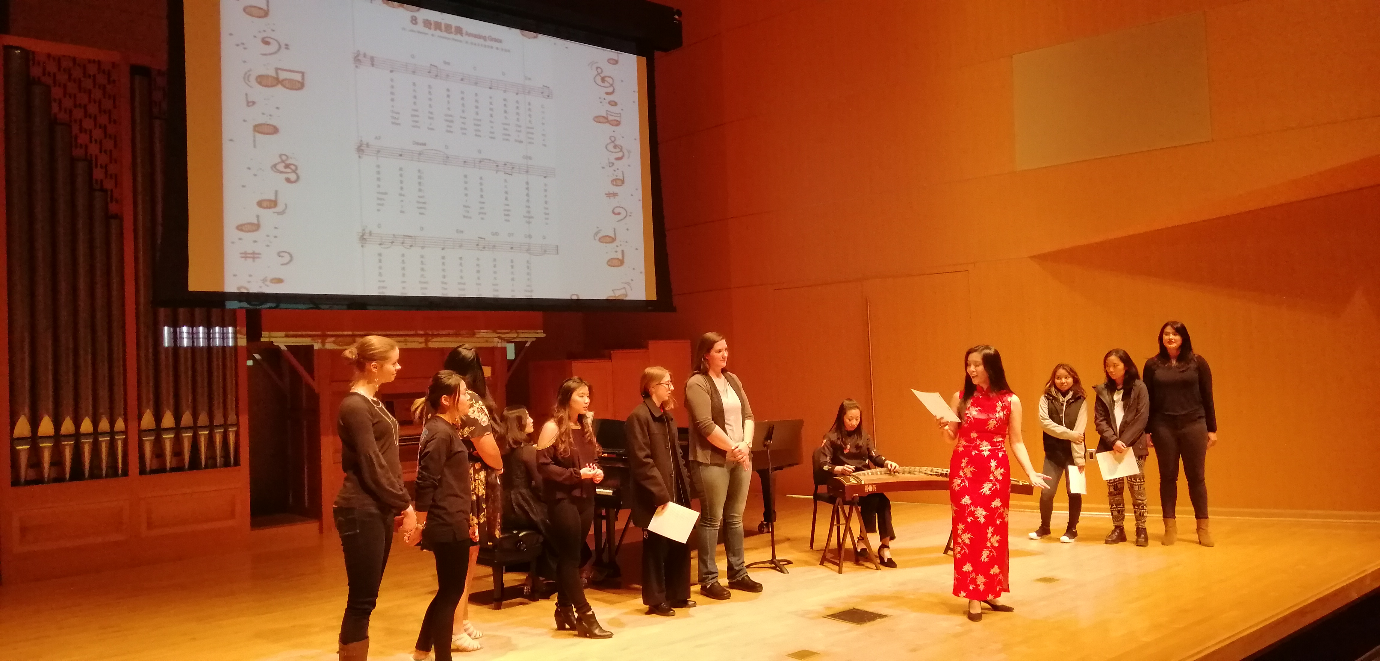 11月19日晚,正在美国中央华盛顿大学访学的yl23411永利集团官网张进副教授,受邀在中央华盛顿大学的麦金泰尔演奏厅,举办了中国艺术歌曲和民歌讲座音乐会。将东方的音乐文化带到了这所美国著名高等学府。此次讲座音乐会,由语言文学学院和音乐学院共同主办,在师生中引起了广泛关注。演出当晚,麦金泰尔演奏厅座无虚席,数百名师生参与,气氛热烈,中央华盛顿大学副校长marilyn Levine教授,语言文学学院院长Michael Johnson教授,音乐系声乐系主任Gayla Blaisdell教授受邀出席了此次讲座音乐会。