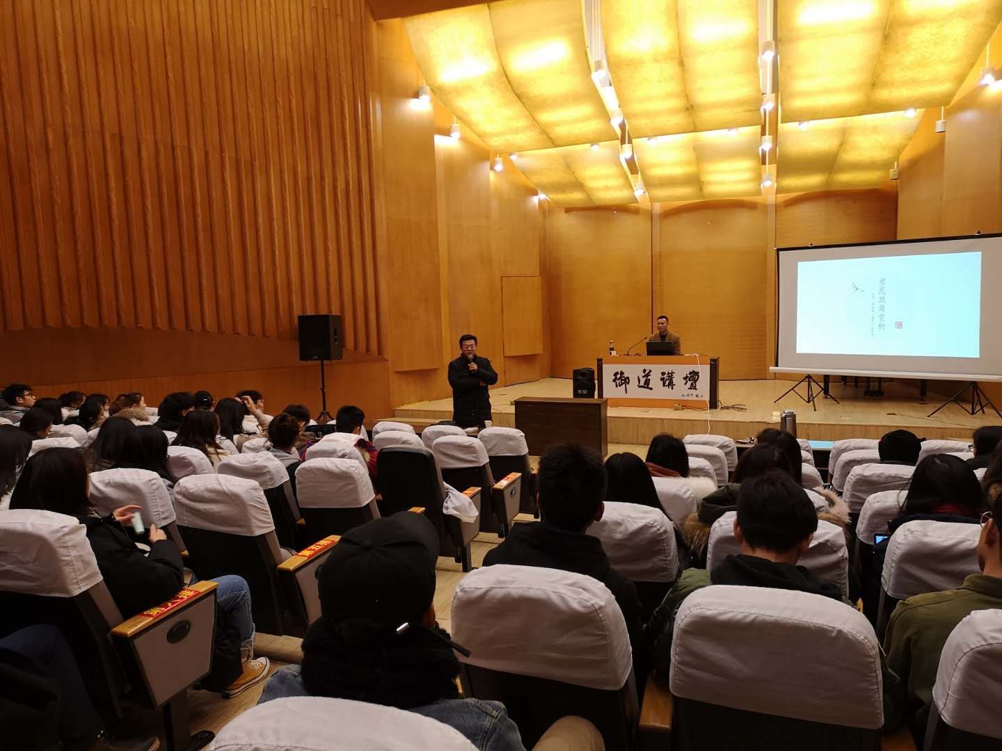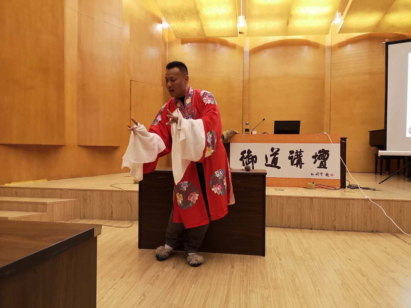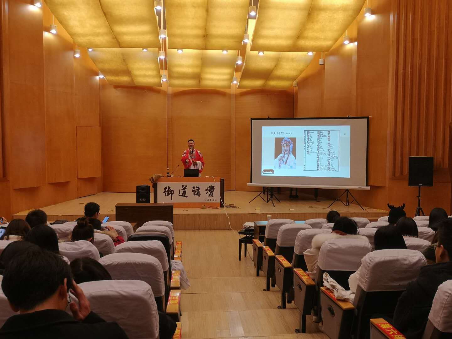 12月14日下午,在将军路校区东区音乐厅举办了第58期御道讲坛:昆曲与京剧中的旦角塑造与艺术表现,yl23411永利集团官网联合学生处邀请到著名京剧、昆曲表演艺术家、国家一级演员彭林刚老师精彩开奖。讲座上,彭老师与同学们分享京剧与昆曲中旦角艺术的别样之美,并现场展示了部分旦角唱段,这是一次理论与现场示范紧密结合的讲座。