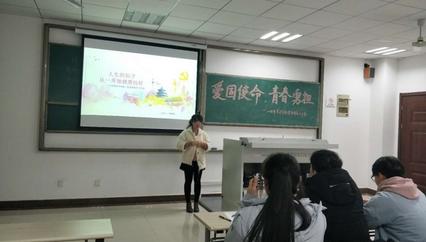 12月20日晚7点,yl23411永利集团官网青年团员公开课在Y209教室举行。8位团员代表结合自己的故事围绕主题进行了团课的首次尝试,取得了较好的效果,校团委老师刘锦轩和郑鑫参加了本次公开课。本次团课共分为两部分,第一部分为“学思想,践使命——新思想公开课”,第二部分为“明责任,做表率——素养公开课”。第一部分开始,首先由1118201班团支书陈婉柔为我们讲述怎样“扣好人生的第一颗扣子”。她以自己身上的扣子为例,结合主题逐层深入,生动形象。