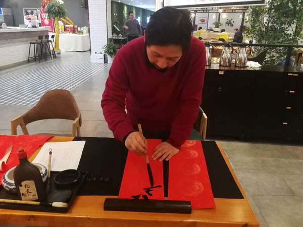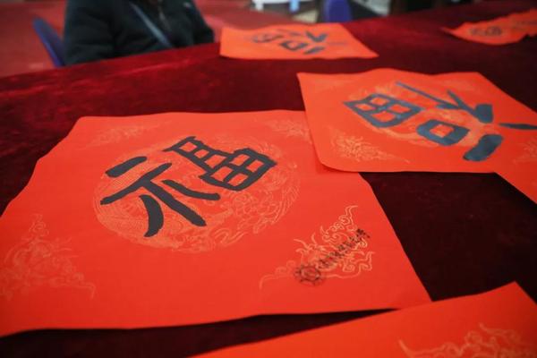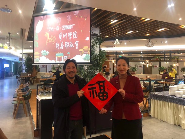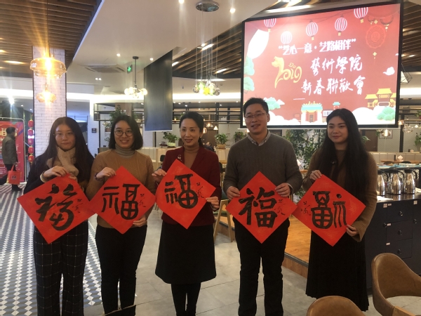 在活动现场,我国著名书法家、学院邱世鸿教授,泼墨挥毫,一气呵成,亲手撰写了对联和福字,引燃了联欢会的热烈气氛。