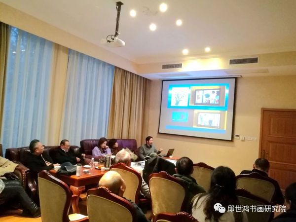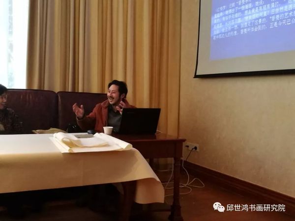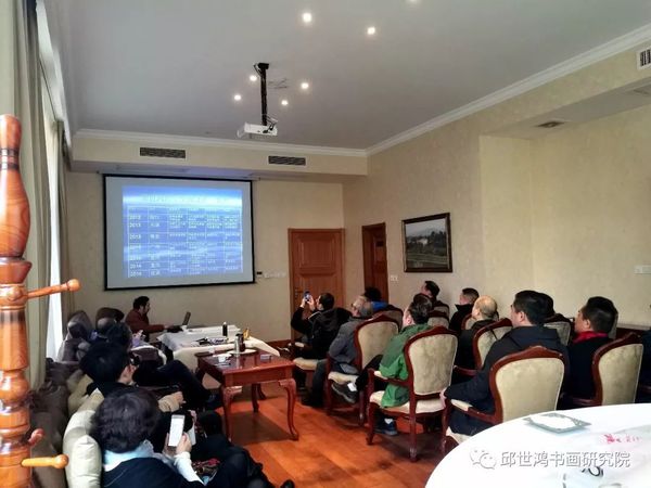 此次讲座时值外企协会新年年会,与会人员大都是成功企业家及书法爱好者。邱世鸿教授特意备课, 并针对当今审美现象进行剖析。近年,邱世鸿教授的全国讲座主题皆围绕“诗书画印与中国文化”而展开,提倡以士人为代表的精英文化和高雅艺术,具体落实在体现士人精神的诗书画印上。他结合自己的创作研究、社会阅历、审美观念对传统文化和艺术进行了梳理、分析和评价。他反对三俗文化对审美文化之干扰,致力提升士人精英文化之地位,主张学院高雅艺术与社会审美需要的结合。大量的图片与幽默的讲解,吸引了企业界精英人士的兴趣。