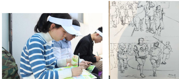 本次“南航师生画南航”活动的绘画类型分为速写、水彩、水粉,参加活动的师生依据自己的喜好,以运动会的场景为内容,将赛场同学老师矫健的身影和奋发拼搏的运动精神留在自己的画纸上,记录下这难忘的一刻。虽然很多师生是第一次接触绘画,但是有专业同学的指导,让参与的师生有了拿起画笔的自信和勇气,感受到了绘画的乐趣,并完成了一份让自己满意的绘画作品。