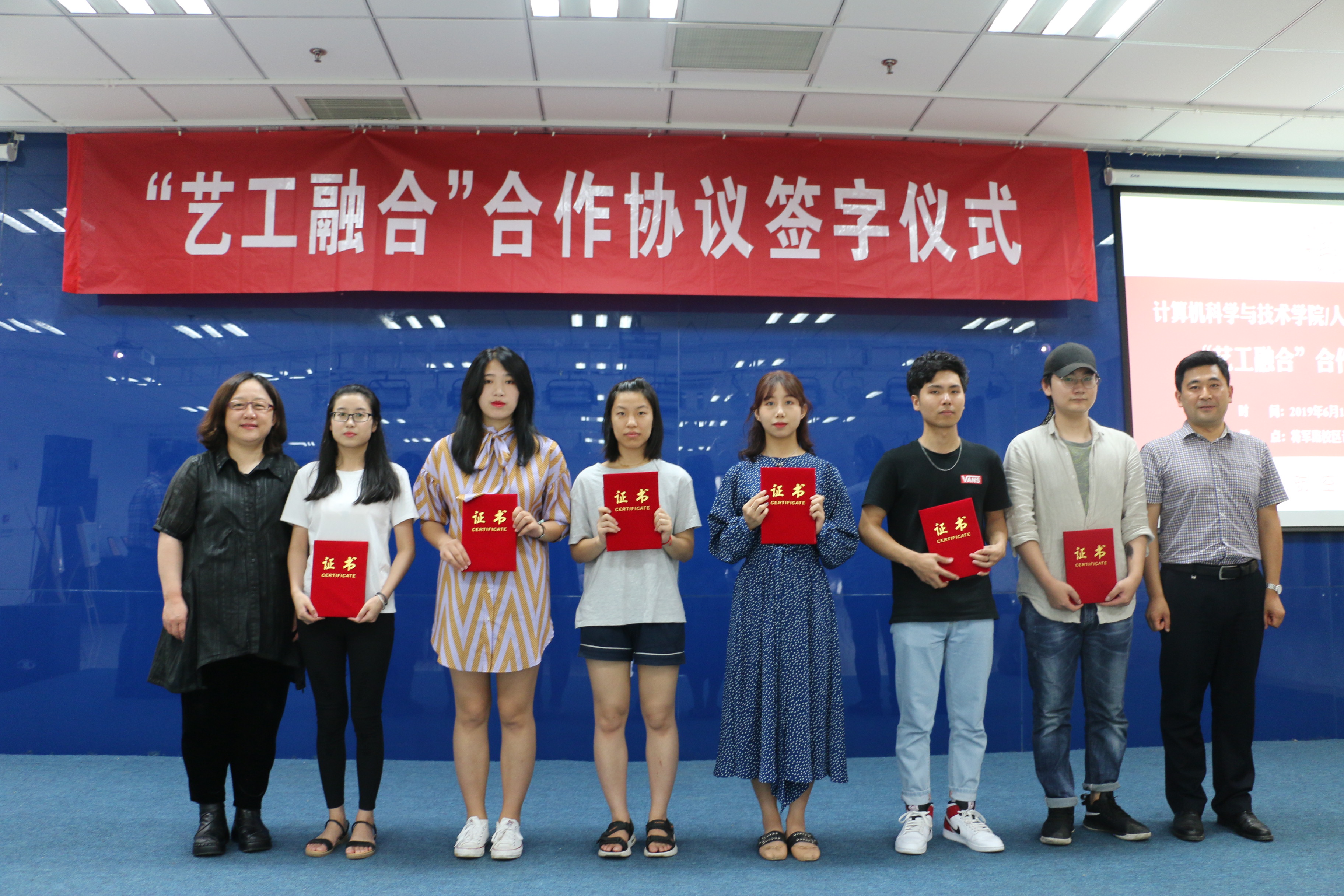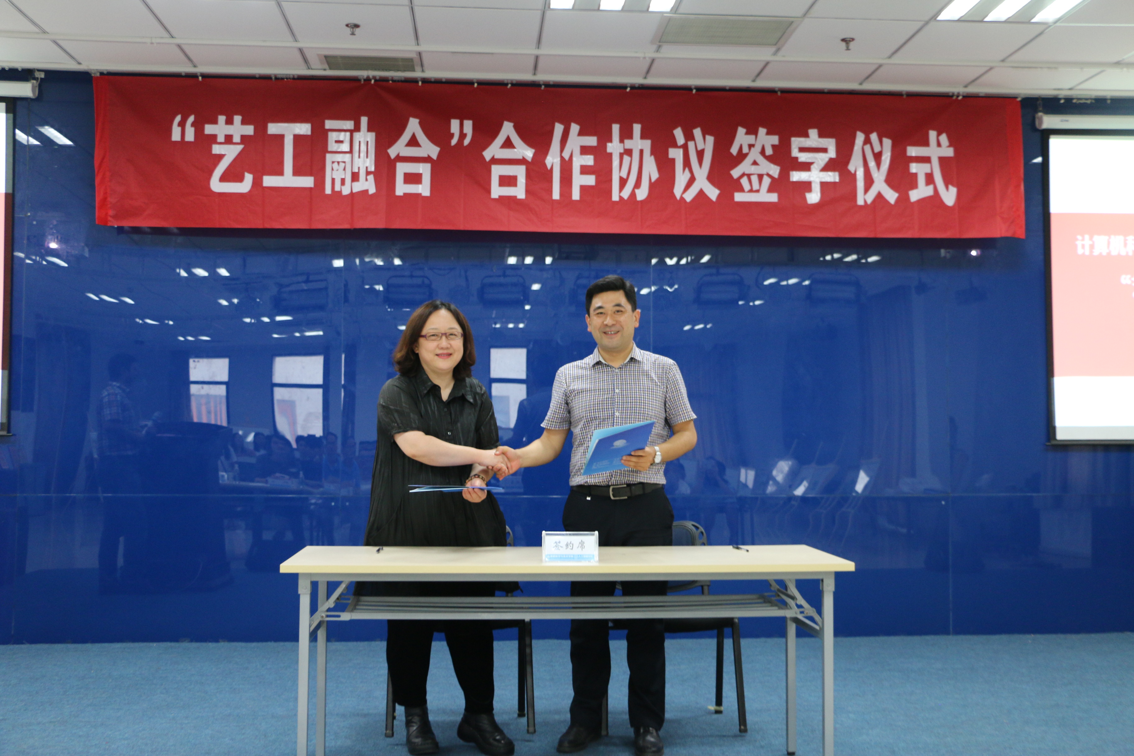 6月19日上午,计算机学院与技术学院/人工智能学院与yl23411永利集团官网“艺工融合”合作协议签字仪式在计算机学院楼515会议室隆重举行。计算机科学与技术学院/人工智能学院党委书记刘健荣、涂华伟副教授;yl23411永利集团官网党委书记高小泽、美术系系主任/设计学学科负责人李伟教授、yl23411永利集团官网美术学学科负责人熊炜教授;两个学院党政办主任、团委书记等三十余位师生出席会议。会议由计算机学院党政办主任谢健主持。