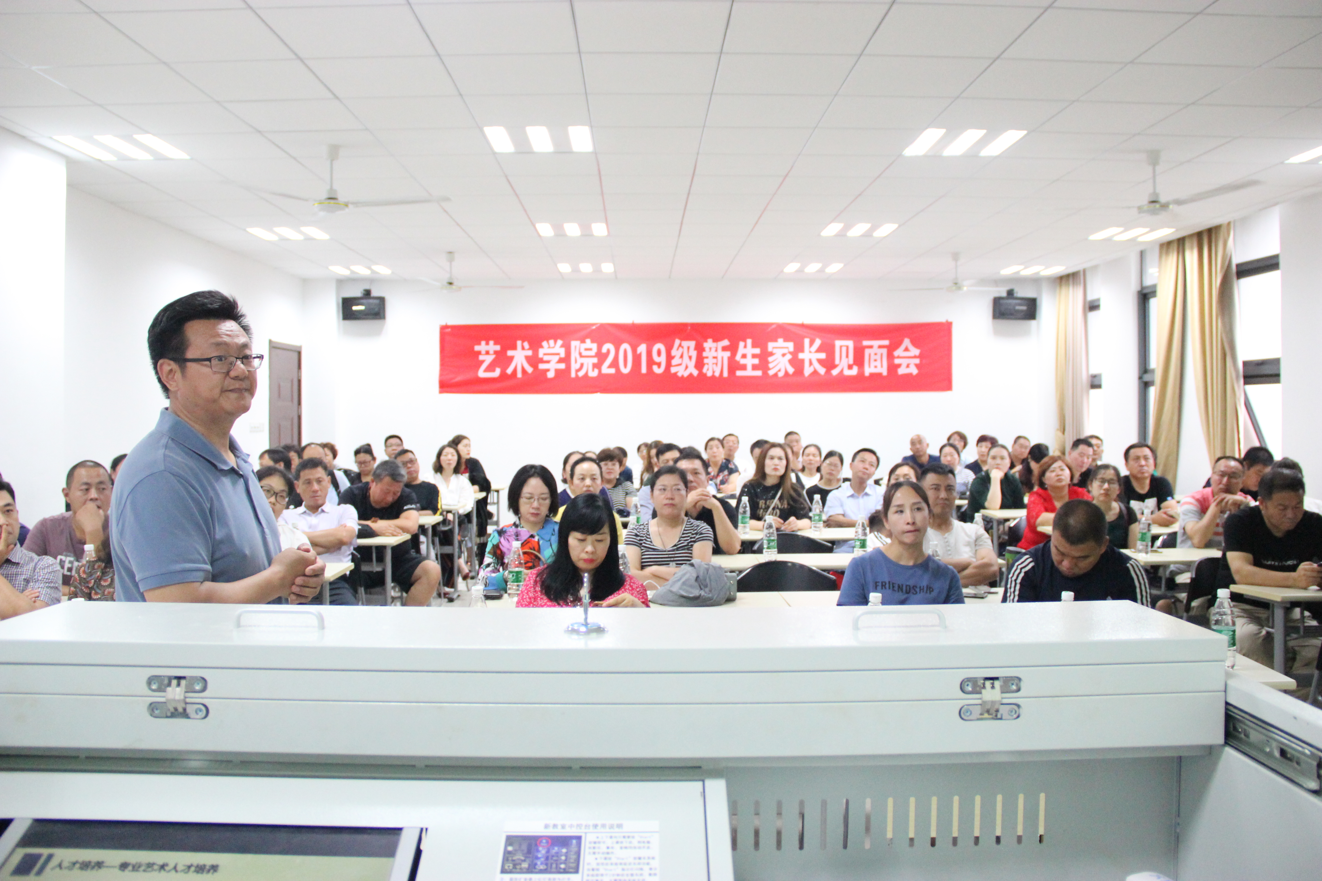 家长见面会上,yl23411永利集团官网副院长板俊荣向家长介绍了学校和学院概况,说明每一个专业的内容、特色和就业情况。家长们都听得十分专心,不时拿出手机拍下PPT上的介绍内容。党委书记高小泽就学院的人才培养理念和目标作了进一步介绍。他介绍道,学院致力于培养全素质、专业化的人才,而作为当代大学生,要兼具“三有”——有情怀、有作为、有希望,“四商”——智商、情商、勤商、逆商。“很多孩子都败在了勤商。”高书记语重心长地说,学习始终是首要的,即使上了大学也不能在学习上有所懈怠。