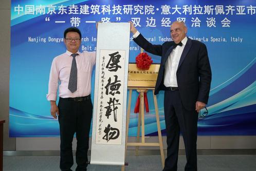 9月20日下午,我院成功协办了由意大利拉斯佩齐亚市文化教育旅游局和南京东垚建筑科技研究院主办的“一带一路”文化交流及经贸洽谈会。本次活动是由南京东垚建筑科技研究院发起,多个部门和企业积极参与的大型文化交流与经贸洽谈系列活动。活动中签订了多个经贸及文化交流协议,最后,中外与会代表共同见证了中欧国际文化交流中心的成立,参加了该中心的揭牌仪式。