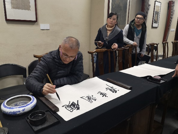 在讲座的尾声,张友宪老师题“观澜索源”四字,书法大气磅礴,对讲座进行了完美的诠释。