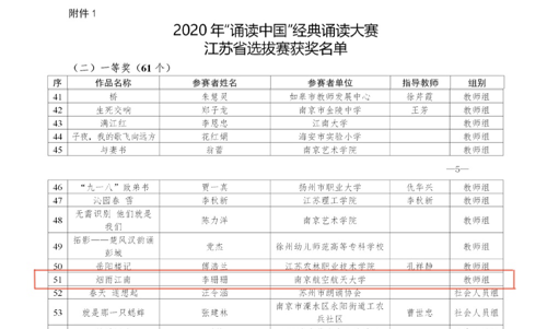 在刚刚落下帷幕的2020年“诵读中国”经典诵读大赛江苏省选拔赛上传来喜讯,我院青年教师李珊珊凭借着作品《烟雨江南》获得了教师组一等奖。
