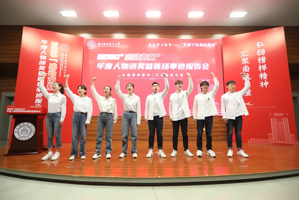 2021年3月30日上午,学校在将军路校区一号楼隆重举行“党旗下的南航精神”2020“感动南航”年度首场人物事迹报告会,会议以小合唱开场,八名同学以饱满的热情演唱了《唱支山歌给党听》,让在场的观众感到耳目一新。