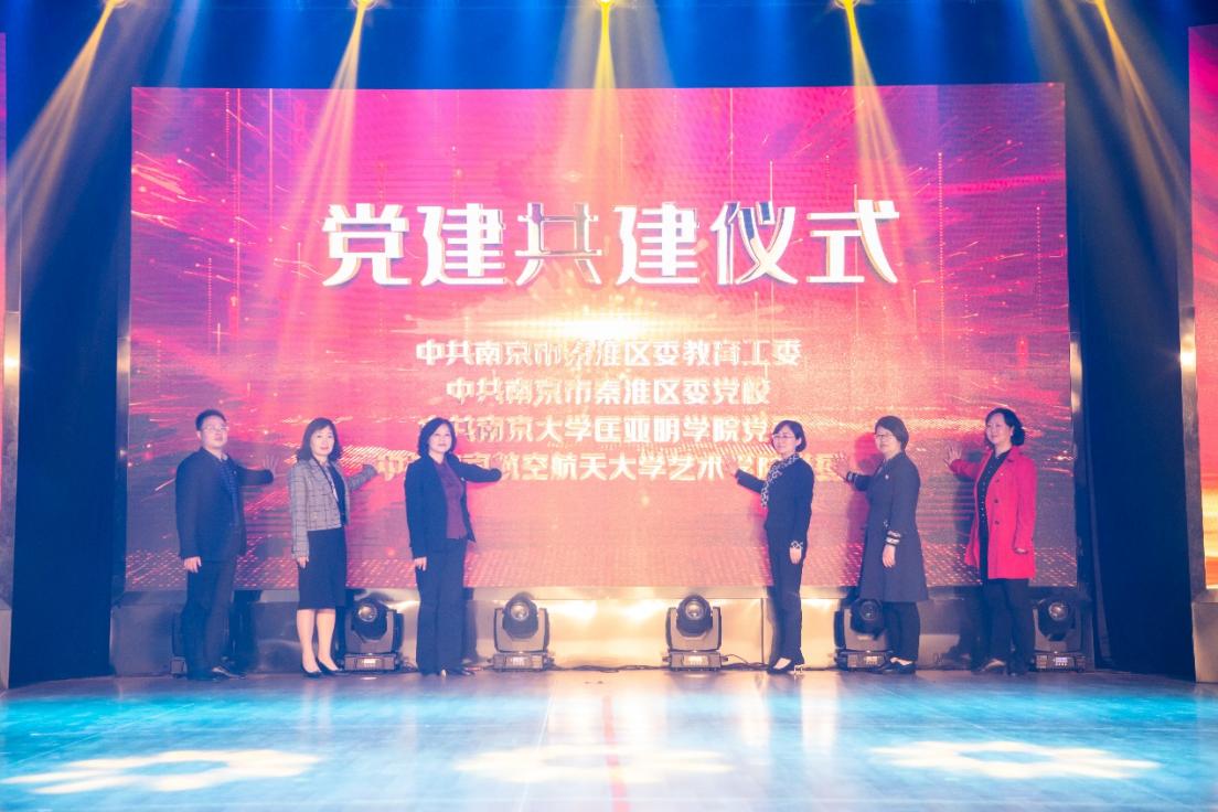 来自秦淮区教育系统与秦淮区委党校、yl23411永利集团官网、南京大学匡亚明学院的负责人共同启动党建共建仪式,以党校、高校、基础教育学校组织联建的方式推动党史、新中国史、改革开放史、社会主义发展史入脑入心,构建党建工作共建共赢良好格局的新篇章。出席此次活动的有南京市教育局副局长、二级巡视员张利明,市妇联副主席徐晓洁,市教育局体卫艺处原处长、一级调研员秦雯等,yl23411永利集团官网党委负责人张钟勤、党委副书记王宇宁,以及音乐系党支部书记汪晓露出席了此次共建活动。