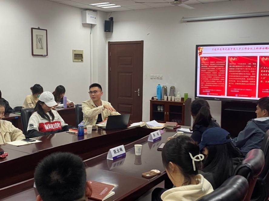 谢坚领学习近平总书记在中央党校(国家行政学院)中青年干部培训班开班式上的讲话精神和中央人才工作会议上的讲话精神。会上全体党员结合学习内容进行了充分研讨。