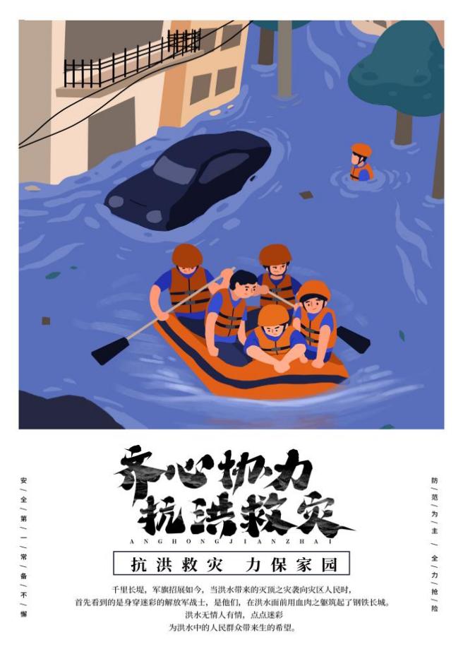 天灾始终会过去,洪水终究会退却。生活仍将继续,但不管是战争年代还是和平年间,我们的党员始终都不能忘记我们“党员”这个光荣的称号。虽然我们没有机会亲自参与到抗洪救灾的一线,但是作为一名预备党员,在这次暑期线上党内实践活动中,我们也发挥了自己的专业特长,为抗洪抢险制作海报和绘画,而战斗在一线的党员们始终是人们最值得信赖的人。危难之时,他们是人民群众最忠实的依靠!