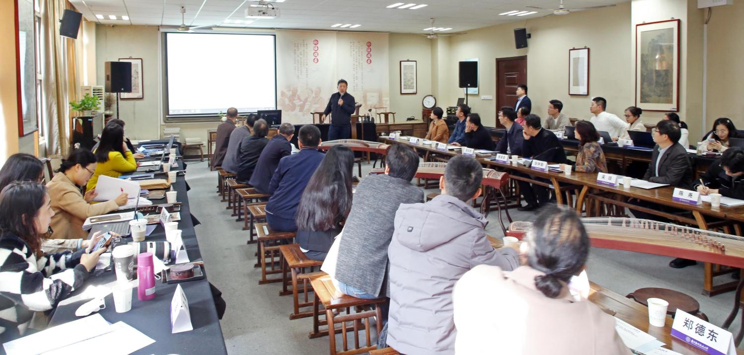 2021 年 11 月 20 日上午,由江苏省文化产业学会、南京大学长三角文化产业发展研究院、文化和旅游部-南京大学文化和旅游研究基地和江苏文化产业研究基地主办,由yl23411永利集团官网、文化和旅游部-南京航空航天大学文化和旅游研究基地和江苏省非物质文化遗产研究基地承办的省社科联 2021 年度社科学术团主题活动——江苏省文化产业学科联席会暨“新文科”艺术专业教学学术研讨会在yl23411永利集团官网砚湖书院(将军路校区) 顺利进行。会议由学院党委书记张钟勤主持。