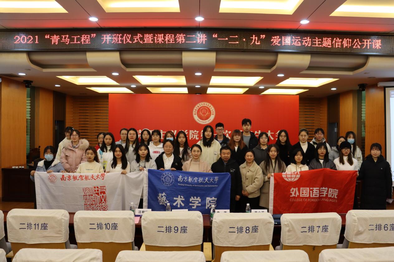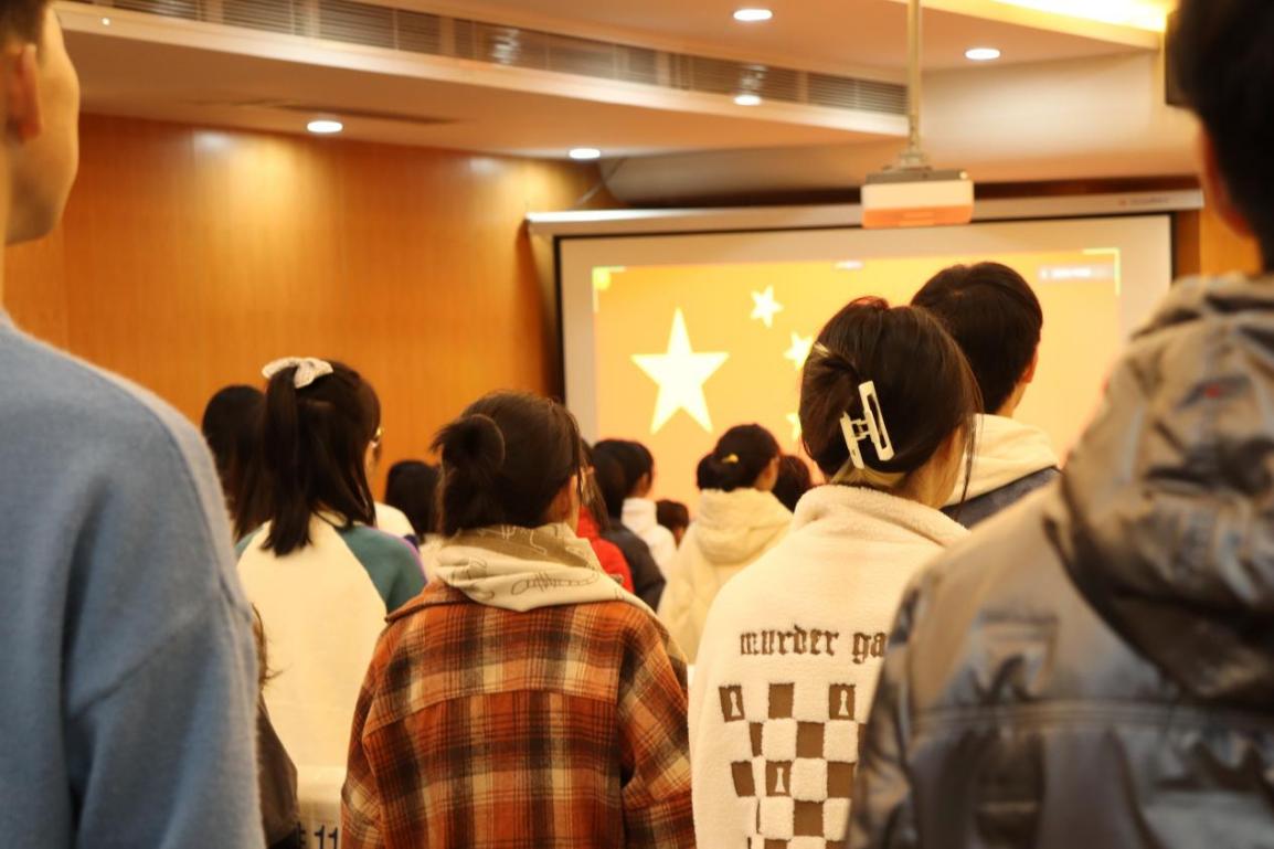 12月9日,2021-2022学年人文与社会科学学院、yl23411永利集团官网、外国语学院“青马工程”培训班开班仪式暨“一二·九”爱国运动主题信仰公开课在人文学院模拟法庭成功举行。马克思主义学院副教授潘银良、外国语学院团委书记李萍、人文与社会科学学院本科生辅导员聂小芳、yl23411永利集团官网研究生辅导员汪明锐与本期全体青马班学员共同参与活动。