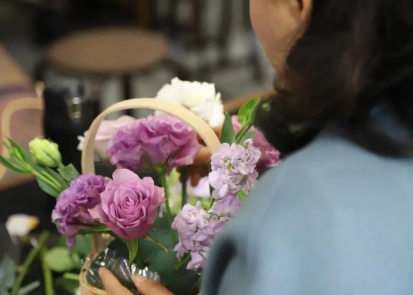 在初步学习了花艺知识后,老师们充分发挥自己的想象力和创造力,将波斯菊、蝴蝶兰、康乃馨、洋桔梗等各色花卉修剪整理,搭配在一起。