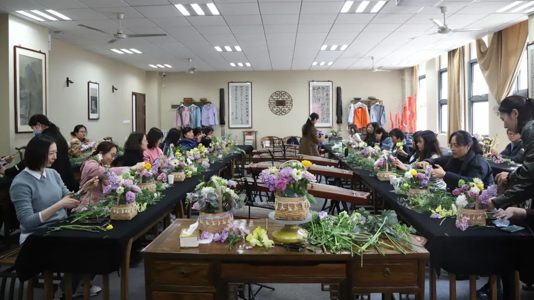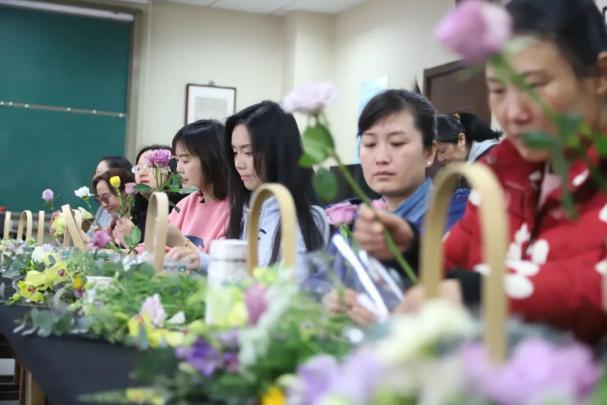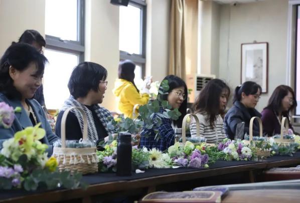 为庆祝第112个“三八”国际劳动妇女节,3月7日中午,我院工会在砚湖书院举办了女神节特别活动--花艺沙龙,特邀专业花艺工作室手把手教学插花DIY。学院20余名女教职工参与了此次活动。