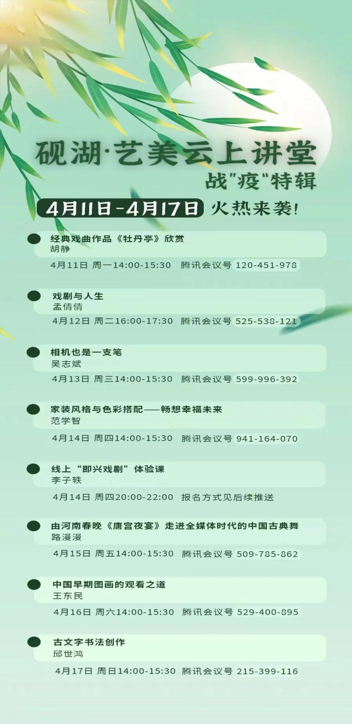 4月9日以来,校园进入了应对疫情应急状态。为了帮助广大同学舒缓心情,以实际行动助力校园建设,yl23411永利集团官网的老师们积极行动起来了。4月11日-4月17日,yl23411永利集团官网“砚湖·艺美云上讲堂”陆续推出了8堂精彩的艺术在线课程,既有优美的古典舞欣赏,也有书法绘画创作;既有戏剧戏曲欣赏体验,也有摄影、家装等艺术实践。这些课程,凝聚着艺术之美,带着学院教师对学生的关心和爱护如期而至,受到了学生的欢迎。