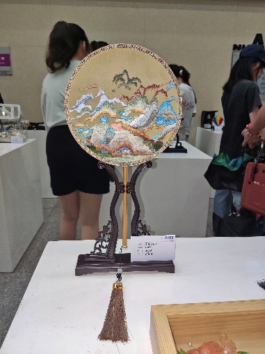 “色样多无定,花纹斗不完。”漫步在12个展台间,同学们的作品用不同的形式,不同的色彩搭配使得图案之美愈发熠熠生辉——刺绣作品恍若一位为古典美人,在每一个独特主题的赋予下,身着不同的衣衫,向我们款款走来,成套的古风首饰则有的超俗、淡雅,体积不大却十分精致,还有的配色丰富,在灯光下变化多端……这些作品让人看到后不禁眼前一亮,老师们也忍不住啧啧赞叹。