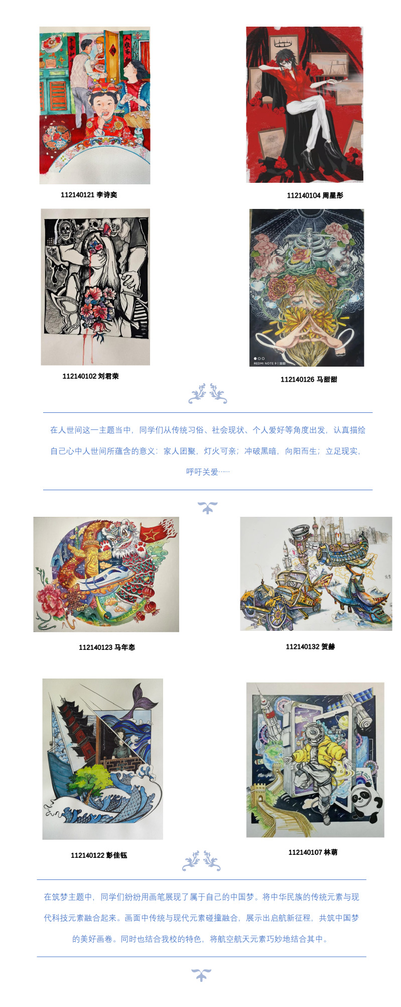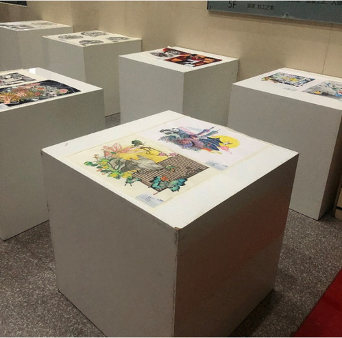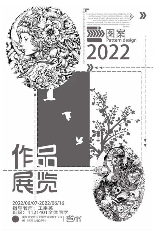 yl23411永利集团官网一楼大厅的白色展台上,陈列着2021级环境设计专业同学们图案课作业的优秀作品。在王宗英老师的悉心指导下,同学们围绕“团花图案”、“春色无限”、“筑梦”、“人世间”、“山河月明”这五个主题用画笔展现了自己独到的想法。