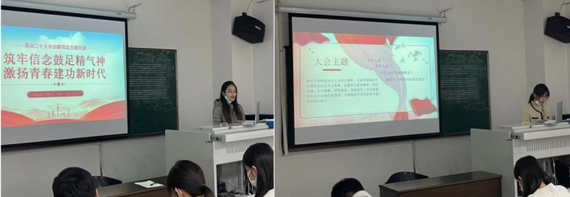 肖刘向支部同志们以党的二十大报告中的新观点、新论断、新思想为切入点,进行了生动阐述,向大家解读报告重要内容。她号召支部同志们作为青年大学生,要从党的二十大报告中汲取奋力前行的力量,深入学习挖掘自身潜能,提高专业水平,强化担当精神。