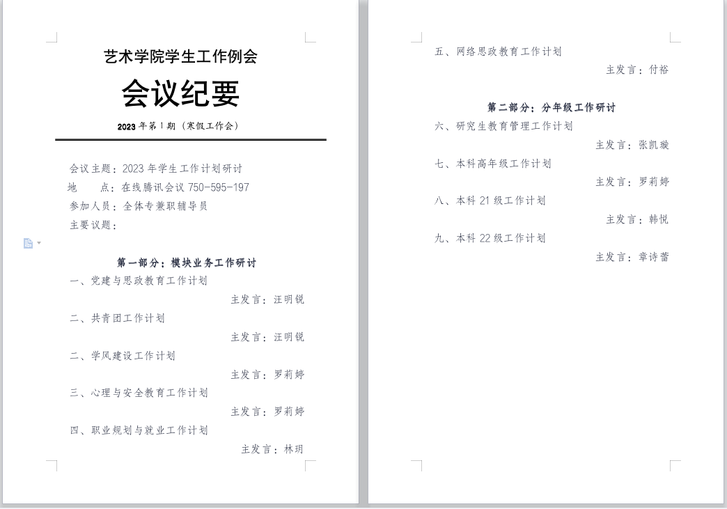 学生工作团队在王宇宁副书记带领下,召开了学生教育管理工作会,从强化顶层设计、掌握学生动态、坚持理论学习三个方面开展工作研究,建立了2023年度模块化的工作计划,不断磨练服务学生成长成才的基本功。