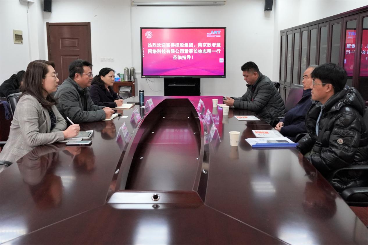 3月1日上午,南京航空航天大学南京歌者盟网络科技有限公司战略合作框架签约仪式在yl23411永利集团官网325会议室举行。富得控股集团、南京歌者盟网络科技有限公司董事长徐志明一行访问yl23411永利集团官网,yl23411永利集团官网党委书记张钟勤、院长板俊荣、党委副书记王宇宁出席签约仪式。