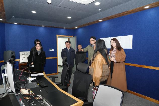 走出立德树人馆,中心组成员们来到宣传部融媒体中心。实地考察了融媒体中心中央厨房、导播中心、高清演播厅等功能区,了解了学校融媒体平台资源整合运行的方式,为学院新闻类专业的建设提供了更多思路。